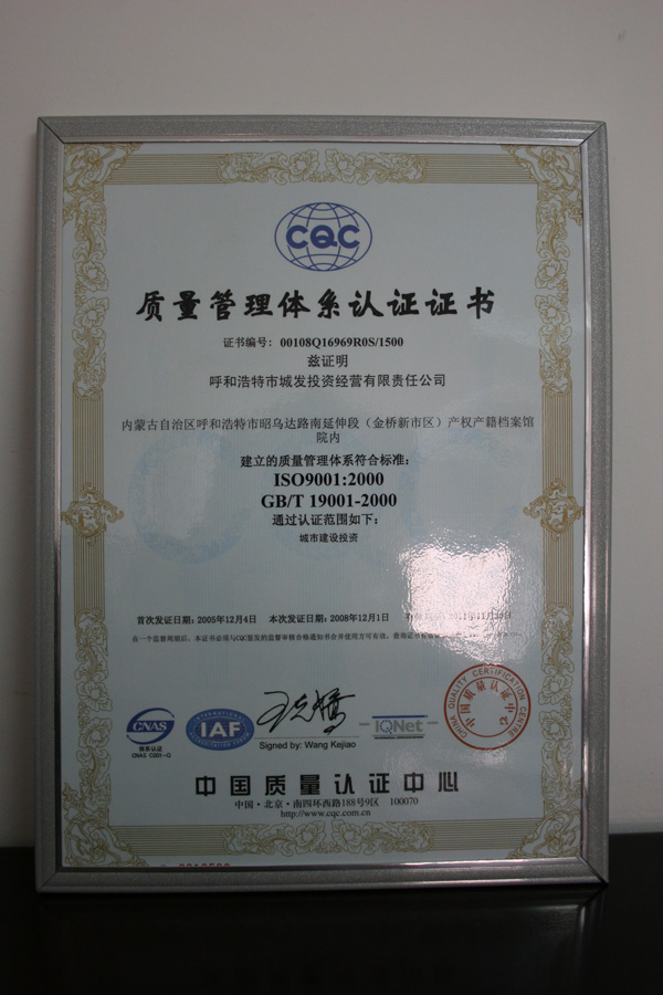 質(zhì)量管理體系認(rèn)證證書