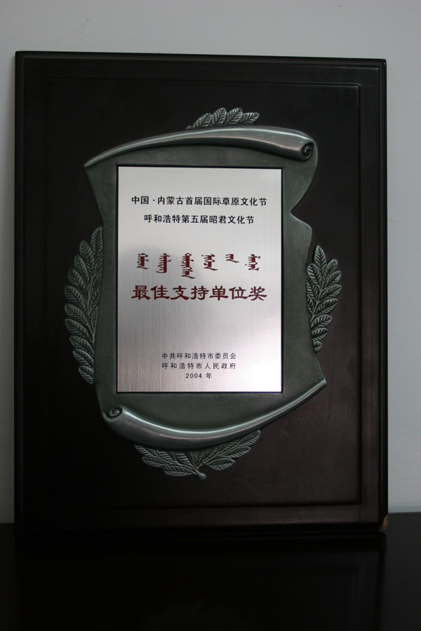 中國·內(nèi)蒙古首屆國際草原文化節(jié) 呼和浩特第六屆昭君文化節(jié)最佳支持單位獎