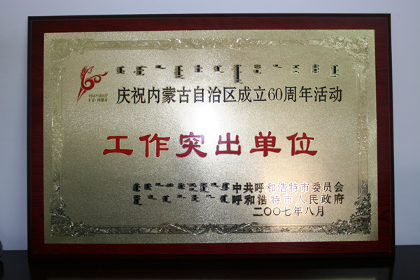 慶祝內(nèi)蒙古自治區(qū)成立60周年活動工作突出單位