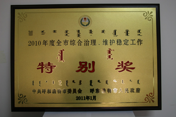 2010年度全市綜合治理、維護(hù)穩(wěn)定工作特別獎(jiǎng)