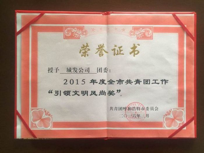 城發(fā)團委獲得“2015年度全市共青團工作引領(lǐng)文明風尚獎”