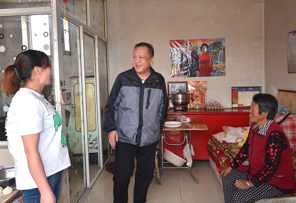 一下車,呂德育、吳利勤就走進(jìn)了“一對(duì)一”包扶貧困戶翟金蓮老人家中,老人因患有腦梗,年歲又高,沒(méi)有勞動(dòng)能力,導(dǎo)致家庭貧困。呂德育關(guān)切地詢問(wèn)了老人近來(lái)的身體健康狀況,仔細(xì)地查看了家里的環(huán)境衛(wèi)生情況,并向老人送去了自己的慰問(wèn)金。老人感激地指著習(xí)主席的畫(huà)像說(shuō):“共產(chǎn)黨好,習(xí)主席好,多謝你們領(lǐng)導(dǎo)干部關(guān)懷和照顧,吃不愁,穿不愁,居住環(huán)境也干凈了,病了也有村合作醫(yī)療。我們老人趕上了好時(shí)代,才過(guò)上了這樣幸福的生活。”在交談中,呂德育再三叮囑老人要保重自己的身體,囑咐村干部要多照顧老人,特別要注意老人的身體健康和居家環(huán)境衛(wèi)生,讓老人度過(guò)一個(gè)幸福、安詳?shù)耐砟?。張永、云崗、武云、趙永強(qiáng)也分別走訪調(diào)研了“一對(duì)一”包扶貧困戶,征求了貧困戶的意見(jiàn)和建議。