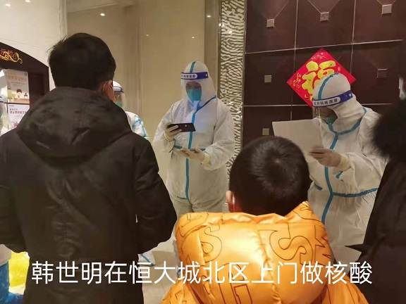 韓世明所居住的小區(qū)是出現(xiàn)確診病例比較早的小區(qū),社區(qū)第一時間對小區(qū)進行了封控。當聽到消息的第一時間,韓世明便向公司報備,然后配合社區(qū)進行核酸檢測,當他知道社區(qū)缺少人手,而他核酸檢測是陰性后,毅然決然的到社區(qū)報道參加志愿者。由于是高風險小區(qū),他們的工作量比其他地方要大的很多,早上五六點就開始做準備工作,有時候甚至凌晨還在工作,看到他的朋友圈志愿者忙碌的身影,嚴格有序的入戶排查,一遍又一遍的清理消毒,很好的詮釋了什么是默默無聞,無私奉獻。