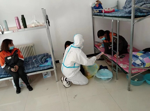 肩負本輪疫情防控心理疏導、醫(yī)務保障和園區(qū)內消殺衛(wèi)生清理工作的趙利軍始終保持高度的政治站位,時刻聽從調度,為打好這場沒有硝煙的戰(zhàn)爭,召之即來,來之即戰(zhàn),為戰(zhàn)勝疫魔在所不惜。他每日通過微信線上與隔離人員溝通交流,了解他們的心情,對個別出現(xiàn)情緒波動的隔離人員做耐心細致的思想工作,根據(jù)他們的特殊情況身體原因,對癥下藥,給予生活上、心理上的特殊照顧,打消他們的顧慮,穩(wěn)定他們的情緒,盡可能讓他們的感受到大家庭的溫暖。疫情防控期間,他點對點送藥30多人次,心理咨詢160多人次,參與核酸檢測600多人次。