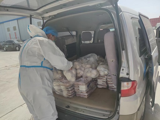 物流公司項目管理處負責人周峰,承擔本次疫情防控物資生活保障工作,負責園區(qū)內的物資收發(fā)工作,1000余人一日三餐的分發(fā),他處處以身作則、任勞任怨、認真負責、每餐分發(fā)都親力親為。盤內一分鐘,廚房更用功。隔離期間,他與廚房工作人員緊密配合,根據(jù)被隔離人員提出的意見和建議,不斷調整飯菜品種、營養(yǎng)搭配,讓隔離人員不但要吃得飽、還要吃得好。疫情防控期間,累計為被隔離人員和防疫工作者提供12597份快餐。