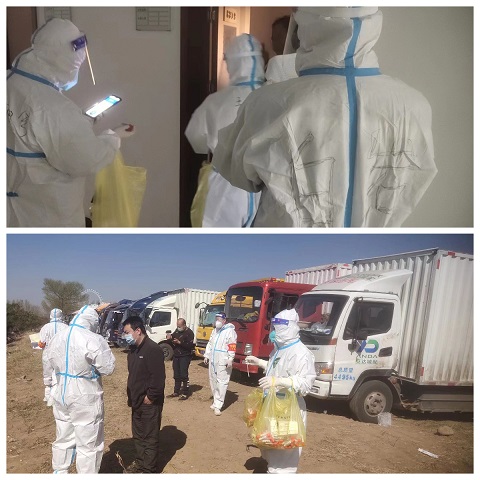 418日早7點,城發(fā)物業(yè)公司抽調(diào)郝曉東、白巖、烏力更三位同志前來支援惱包物流園區(qū)防疫工作,他們的抗疫工作任務(wù)是惱包園區(qū)內(nèi)北側(cè)露天停車場貨運車輛管控,負(fù)責(zé)對57輛貨運車輛及71位司機進行防疫管控,登記排查車輛信息、餐食發(fā)送、體溫監(jiān)測、人員管控。疫情防控期間,他們不畏艱辛、勇于向前,開展核酸檢測工作490余次、體溫檢測210余次、共計發(fā)放餐食350余人次。在21日完成停車場人員分流管控工作后,22日接到新的防疫工作指令,隨即又沖向一線,開展3棟信息樓共300余人體溫監(jiān)測、日常信息報送等防疫工作,24日順利完成所有的防疫工作。