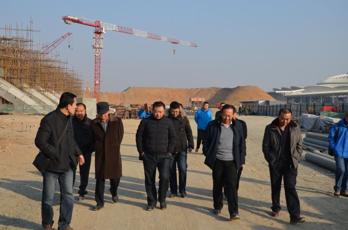 在長途汽車站工地聽負(fù)責(zé)人介紹情況。