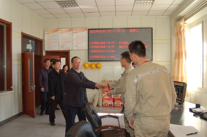 臘月二十九,黨委書(shū)記、總經(jīng)理張瑞平,黨委副書(shū)記、工會(huì)主席張永,黨委委員、副董事長(zhǎng)杜雄勇,黨委委員、副總經(jīng)理史繼文4人率隊(duì),分別到四個(gè)供熱分公司,深入車(chē)間、運(yùn)營(yíng)所、收費(fèi)大廳、熱力站,對(duì)一線員工進(jìn)行了慰問(wèn)。(文/亞利)