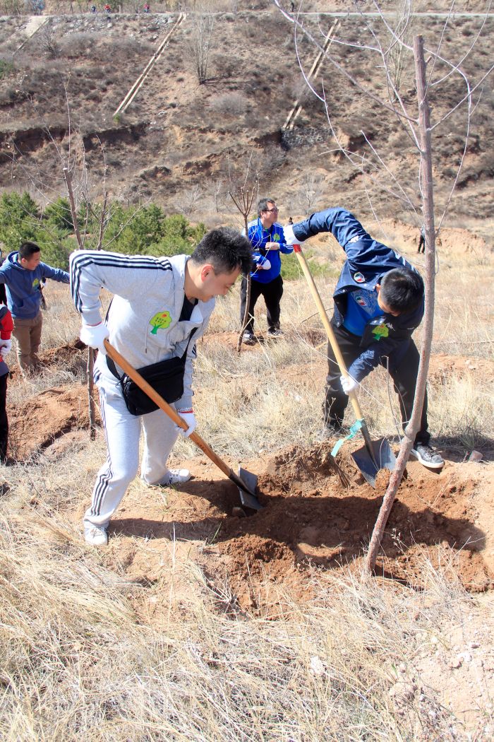活動現(xiàn)場,公司團(tuán)員青年在團(tuán)委副書記郭振宇的帶領(lǐng)下,有序的加入到植樹活動的行列中,植樹現(xiàn)場一派熱火朝天,大家干勁十足,配合默契,三人一隊,五人一組,忙的不亦樂乎。在綠化技術(shù)人員的指導(dǎo)下,大家分工協(xié)作,有的挖坑,有的扶苗,有的培土到處都是忙碌的身影。大家不顧鞋褲上的泥土,一起揮鍬揚(yáng)土,把一棵棵樹苗穩(wěn)穩(wěn)地栽好,并精心地把土踩實,為它們澆灌生命之水,經(jīng)過一個半小時的辛勤勞動,共栽植30余棵山桃樹,大家用自己的行動和汗水把青年林裝點得更加生機(jī)盎然。