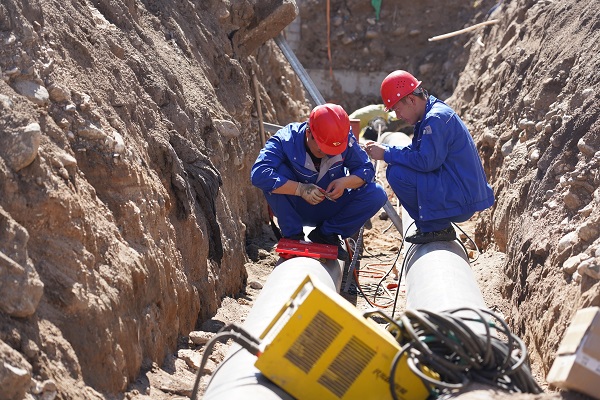 身后有兩個穿著藍色工衣的工人正在管道上貼著什么東西,正當筆者準備走近一看究竟時,被他們厲聲喝住。"前方機器工作中,有輻射,人員不能靠近!"聽到這話,筆者不自主的向后退了兩步。待他們關閉機器,得到允許后,筆者才上前去了解了這兩個"神秘人"。原來,他們是負責給管線做探傷檢測的。所謂的探傷檢測,就是利用X射線可以穿透物質(zhì)和在物質(zhì)中具有衰減的特性,發(fā)現(xiàn)缺陷的一種無損檢測方法。剛才他們開啟的設備就是X射線機。筆者笑著打趣道:"那你們就是負責給管道拍X光片的管道醫(yī)生吧。"