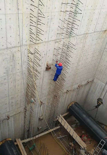 趙永軍介紹,現(xiàn)井底的工人們正在進(jìn)行管道的焊接工作,每天可完成四道焊口,從焊接,探傷,PE保溫外護(hù)管的熔接,到打孔注料,流水施工,多作業(yè)面同時進(jìn)行。現(xiàn)以單向每天18米的速度推進(jìn),截至目前,雙管推進(jìn)約180余米,工程建設(shè)已完成過半。管道平行推進(jìn)完工后,可進(jìn)行管道噴砂、隔墻混凝土澆筑及恢復(fù)綠化等后續(xù)工程。