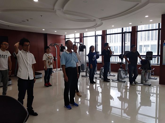 9月6日上午8時(shí)30分,激情洋溢的樂曲準(zhǔn)時(shí)在城發(fā)集團(tuán)19樓健身房響起,城發(fā)公司的20余名干部職工隨著鏗鏘有力的節(jié)拍,舒展身姿,精神抖擻地跳起了健身操。這是城發(fā)公司工會為備戰(zhàn)市工間操比賽作的一次賽前集訓(xùn)。