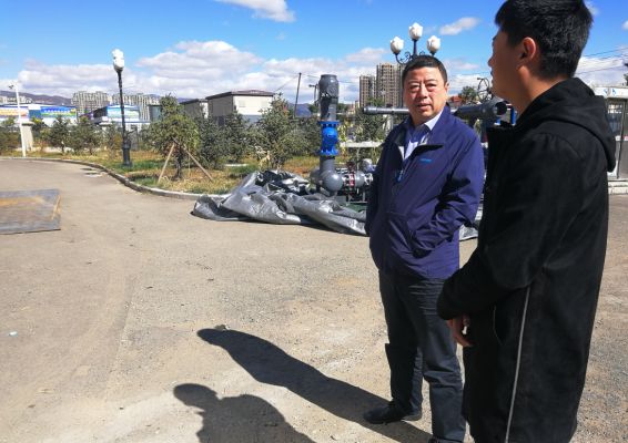 在財(cái)政廳東站景泰小區(qū)供熱管網(wǎng)項(xiàng)目收尾施工現(xiàn)場(chǎng),副經(jīng)理任強(qiáng)向負(fù)責(zé)該項(xiàng)目的施工負(fù)責(zé)人詢問(wèn)了施工的具體情況,對(duì)項(xiàng)目工作進(jìn)展情況給予充分肯定。