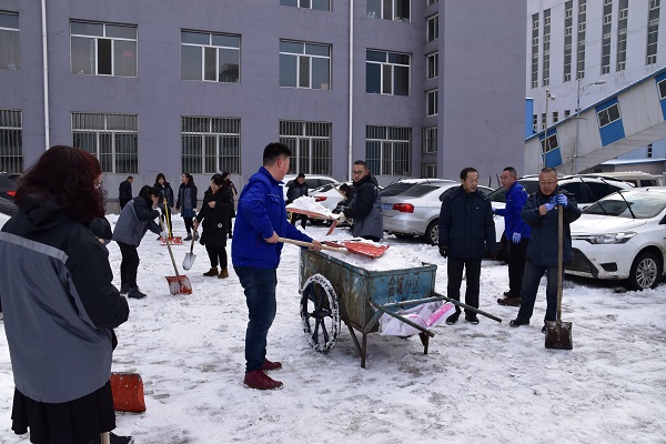 16日,辛家營分公司黨支部組織黨員、環(huán)節(jié)干部、團(tuán)員青年及普通職工共計(jì)30多人開展了清除廠區(qū)內(nèi)積雪的活動(dòng)。