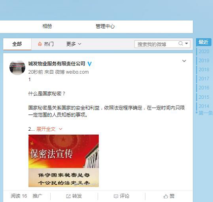 此外,公司還充分運(yùn)用電子顯示屏、微博等媒介宣傳、普及保密法律法規(guī),把保密和密碼宣傳教育工作延伸到廣大群眾中去,努力樹(shù)立保守國(guó)家秘密人人有責(zé)的意識(shí)和國(guó)家觀念。