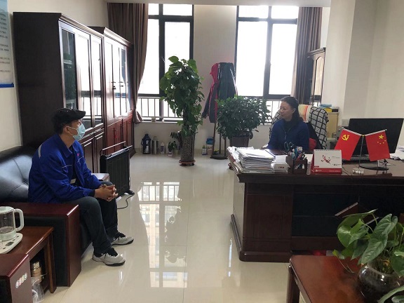 此次活動(dòng)主要訪談接待公司困難職工,了解他們?cè)诠ぷ鳌⑸罴凹彝シ矫娲嬖诘睦щy,征求意見(jiàn)建議,力所能及的幫助解決實(shí)際問(wèn)題。黨支部書(shū)記郭依群還接待了公司新入職的職工,和他們促膝而談,詳細(xì)介紹了公司的發(fā)展情況,鼓勵(lì)他們要發(fā)揚(yáng)青年職工敢于爭(zhēng)先、吃苦耐勞的精神。同時(shí)郭依群同志還同積極入黨的同志進(jìn)行了談心談話,了解其思想動(dòng)態(tài)和工作情況,并要求他們要加強(qiáng)學(xué)習(xí)、提高思想認(rèn)識(shí)和政治覺(jué)悟,時(shí)刻以共產(chǎn)黨員的標(biāo)準(zhǔn)要求自己,爭(zhēng)取早日入黨。