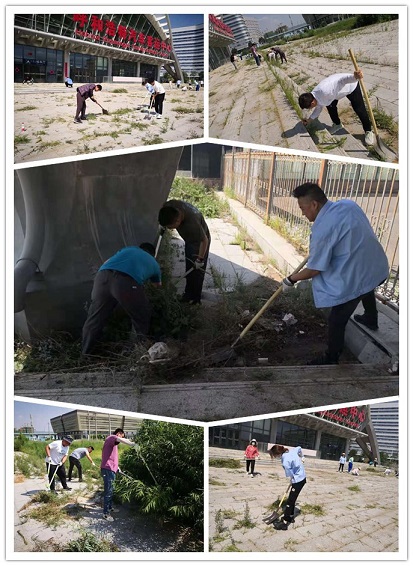 經(jīng)過一上午的作業(yè),廣場上的蒿草基本清理完畢。大家
